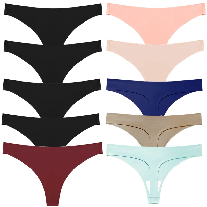 10PCS Female Thongs Silk Satin Panties Sports Seamless Underwear